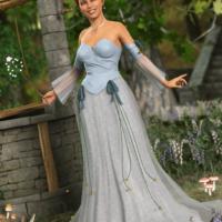 This stunning new fantasy outfit for the 3D Genesis and Genesis 2 Female includes corset, skirt, overskirt, sleeves and more. The clothing contains extra handles meant to work along with the morphs to achieve the desired pose and style, and the set fits all available DAZ female characters for the Genesis 2 Female.